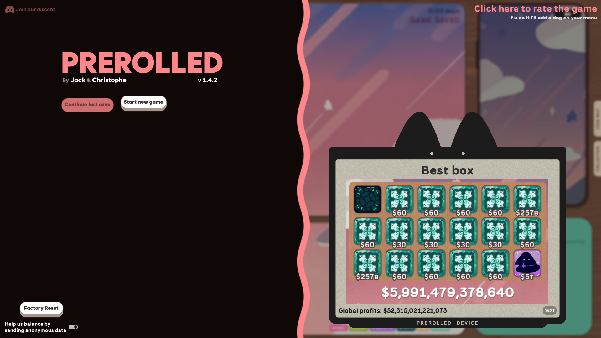 This is the first game I've ever wanted to buy from itch.io. It's so well done and addicting, and it shows that you've put so much thought into this game. I love the descriptions and easter eggs and everything! A splendid game!